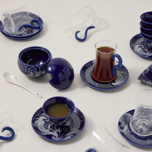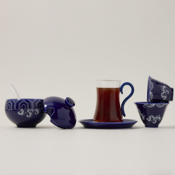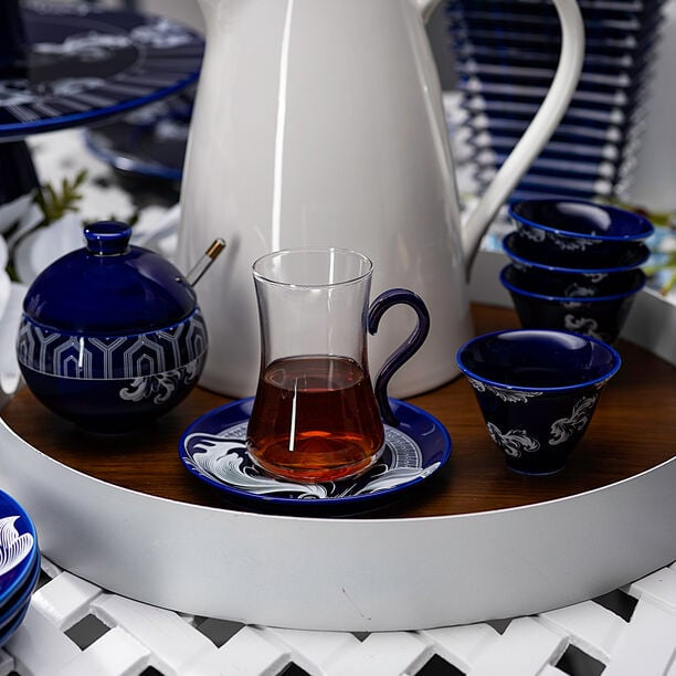 Bring sophistication and charm to your tea and coffee moments with the Blue Elegance Set. This exquisite 21-piece collection includes beautifully designed cups for both tea and Arabic coffee, complete with matching saucers and serving accessories. Featuring a luxurious blue motif with delicate detailing, this set is perfect for hosting guests, family gatherings, or special occasions. It combines functionality with elegance, making every serving a memorable experience.