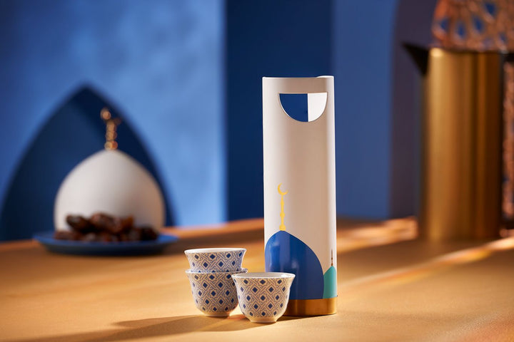 Celebrate tradition with a touch of elegance with the Blue & White Arabic Coffee Cup Set. This 6-person set includes beautifully crafted cups in a classic blue and white design, neatly arranged on a stylish holder for easy serving and display. Perfect for hosting guests, family gatherings, or festive occasions, this set combines cultural charm with modern practicality.