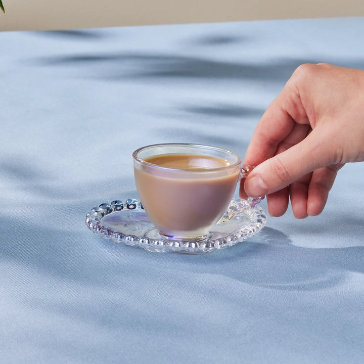 Start your coffee moments with charm using this 4-Piece Coffee Set for 2 Persons (80ml each). The set includes 2 rainbow-colored glass cups and 2 matching saucers, perfectly sized for serving espresso, Turkish coffee, or your favorite small-brew drinks. The vibrant rainbow finish adds a modern and stylish touch, making it a delightful choice for both daily use and special occasions.