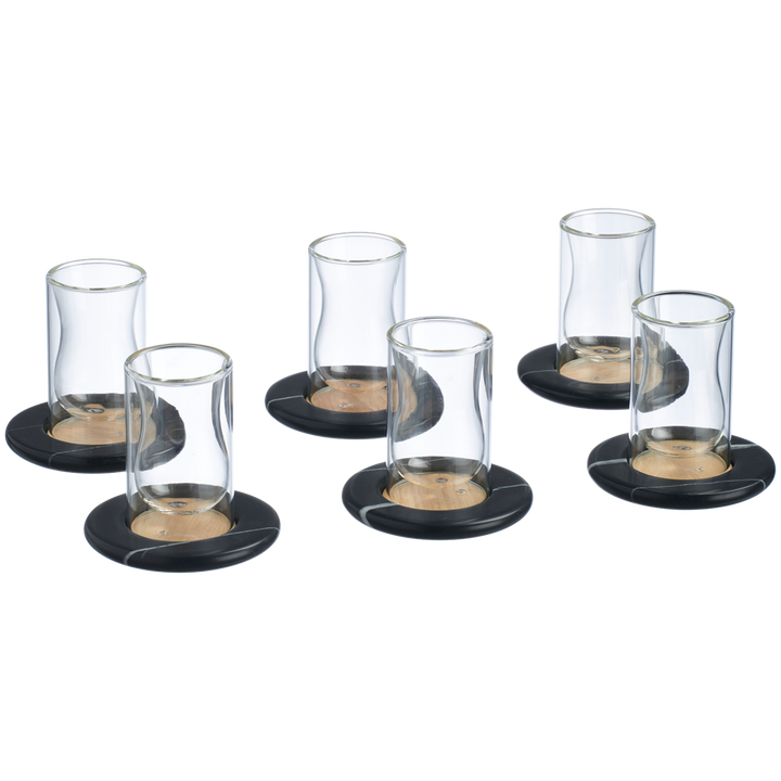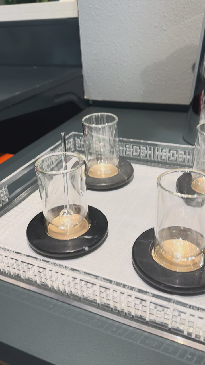 Elegant Glass Tea Set with Marble Plates – 12 Pieces for 6 Persons