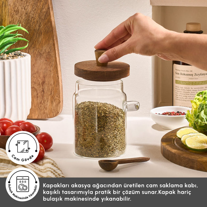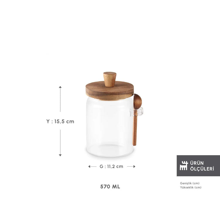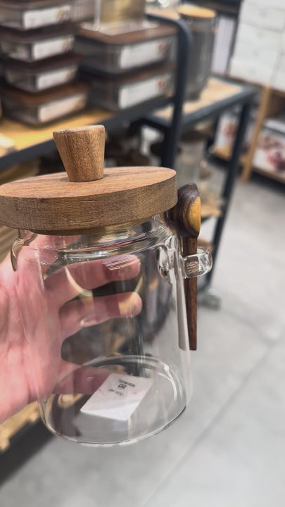Glass Storage Jar with Wood Lid & Spoon 12 cm