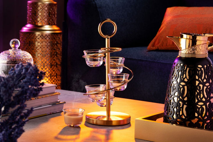 Golden Elegance Arabic Coffee Cup Set with Stand