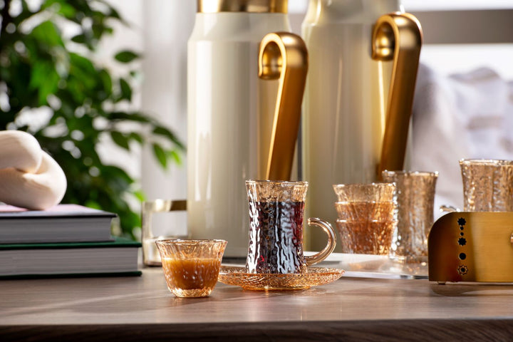 Honey Color Tea & Arabic Coffee Set – 18 Pieces