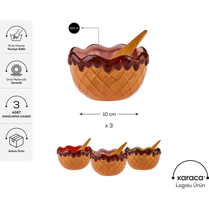 Enjoy your favorite desserts in style with this 6-Piece Ice Cream Ceramic Set, featuring 3 bowls (200ml each) and 3 matching spoons. Perfectly sized for ice cream, pudding, fruit, or snacks, this set is designed for both everyday indulgence and special occasions. Crafted from high-quality ceramic, the bowls combine elegance with durability, while the coordinating spoons complete the set for a charming table presentation.