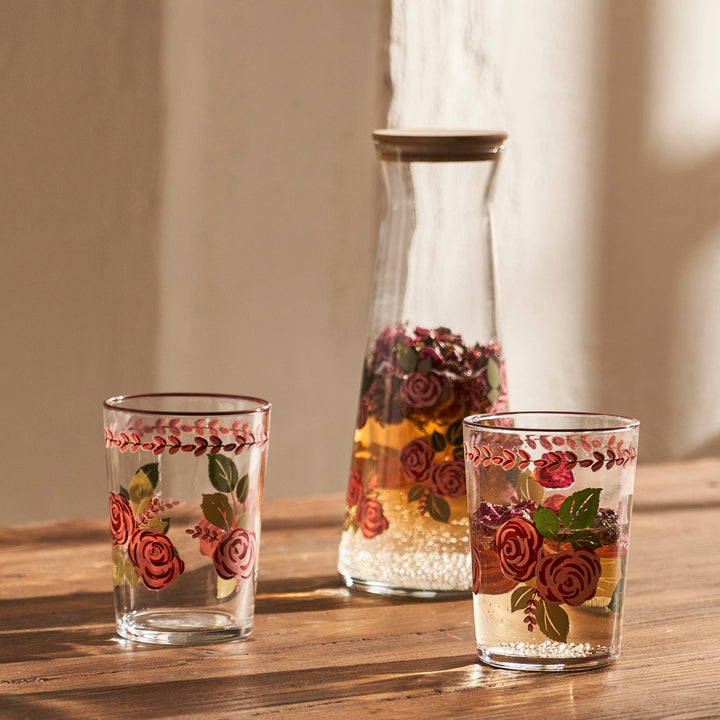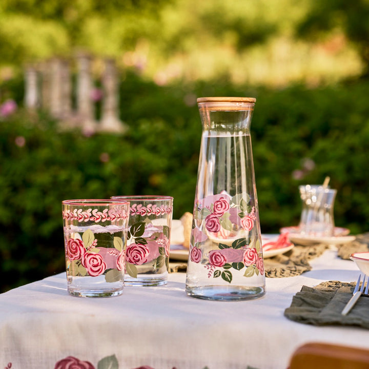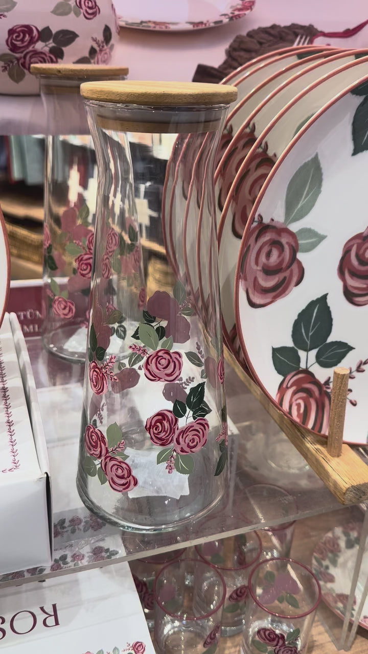 Add a touch of floral elegance to your table with the Maryam Kira Rose Bottle. Designed with delicate rose patterns and a sleek porcelain finish, this 1-liter bottle combines beauty and practicality. Perfect for serving water, juice, or any cold beverage, it brings timeless charm and sophistication to your dining experience.