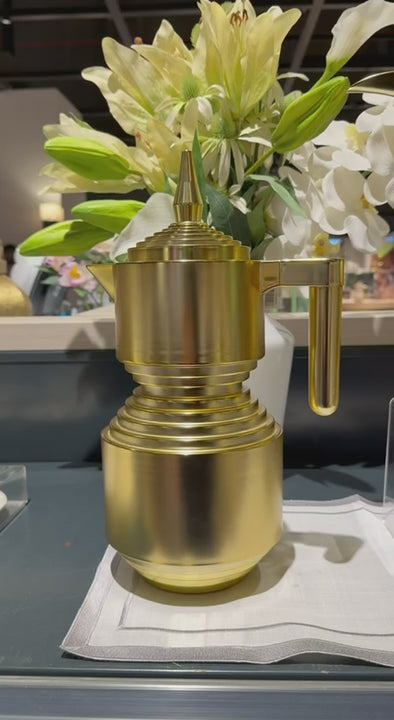 Featuring a sleek matte gold finish and a clean minimalist design, this elegant coffee dallah adds a sophisticated, modern touch to any setting. Perfect for everyday use or serving guests in style.