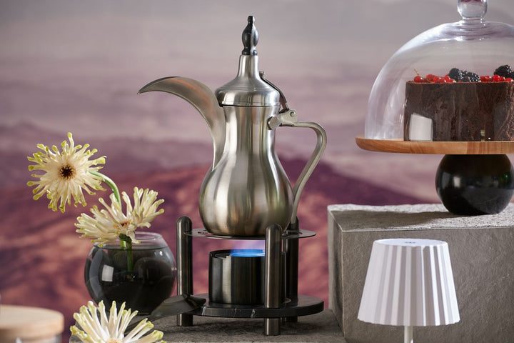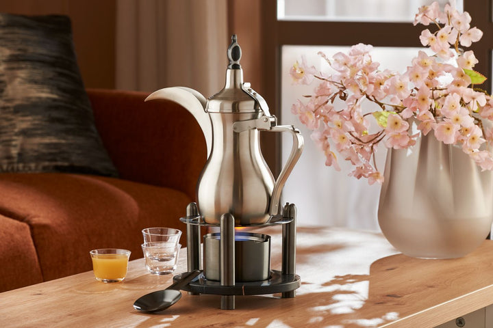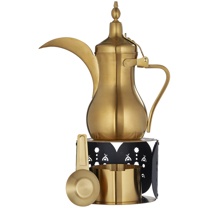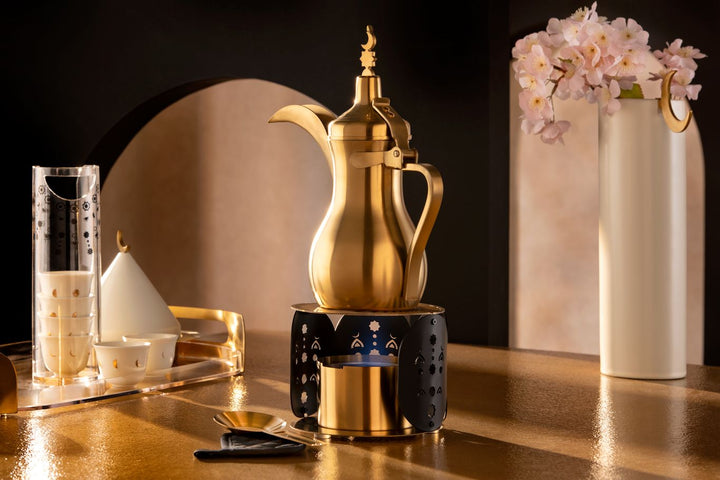 Embrace the essence of Arabic hospitality with the Royal Dallah Coffee Pot. Available in both gold and silver finishes, this 1-liter dallah is crafted to serve traditional Arabic coffee in timeless style. Complete with a matching stand, it combines elegance, functionality, and cultural heritage, making it a perfect addition to your gatherings, majlis, or special occasions.