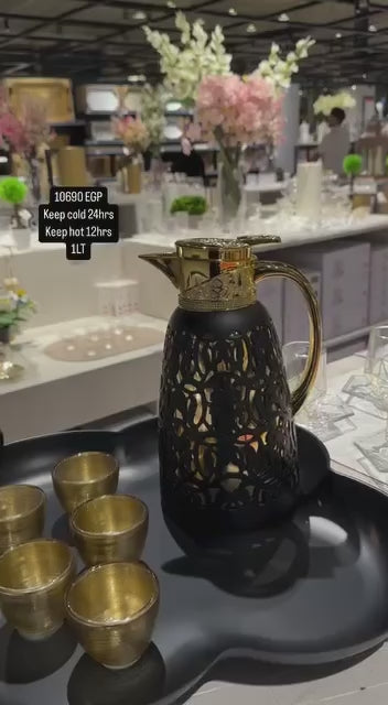 Add a touch of timeless elegance to your serving experience with the Royal Gold & Black Coffee Dallah. Designed with a classic silhouette and a luxurious gold and black finish, this piece blends traditional charm with modern sophistication.
