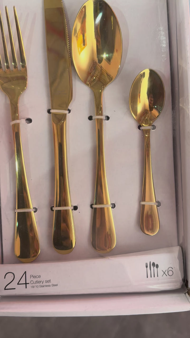 shiny gold stainless steel cutlery set 24 psc 6 person