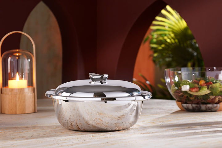 Keep your dishes perfectly warm and ready to serve with the Silver Stainless Steel Food Warmer. Crafted from premium stainless steel, this elegant warmer ensures even heat distribution and durability, making it ideal for family meals, buffets, or special gatherings. Its sleek silver finish adds a touch of sophistication, while the practical design helps maintain the perfect serving temperature for your favorite dishes.
