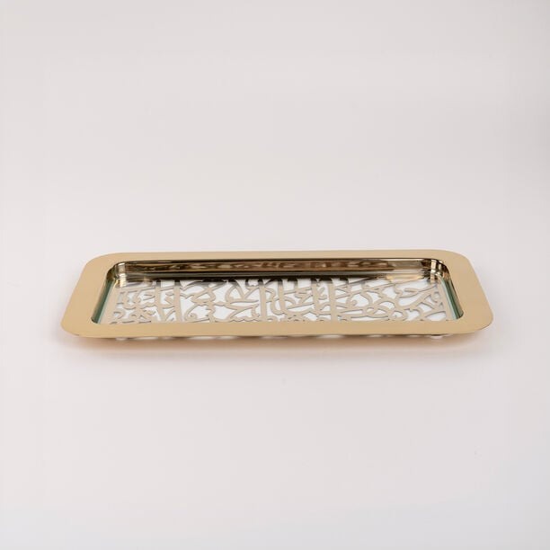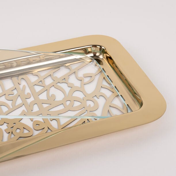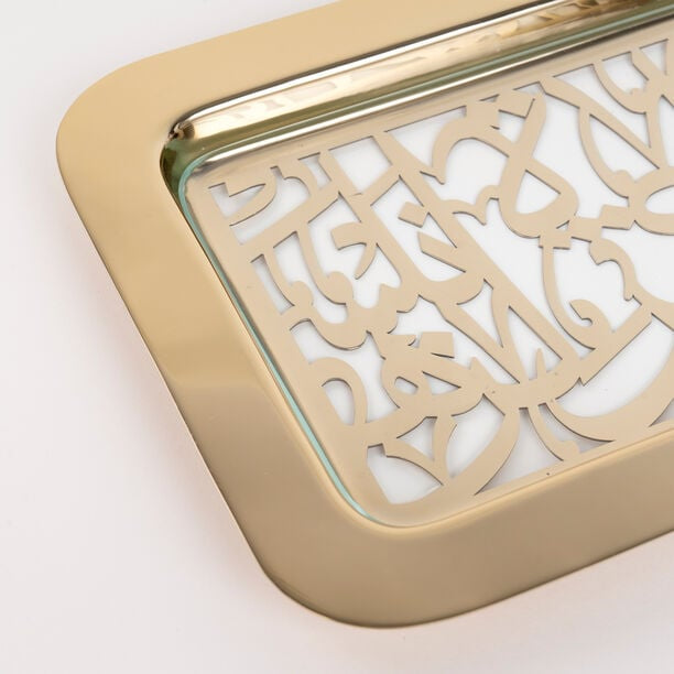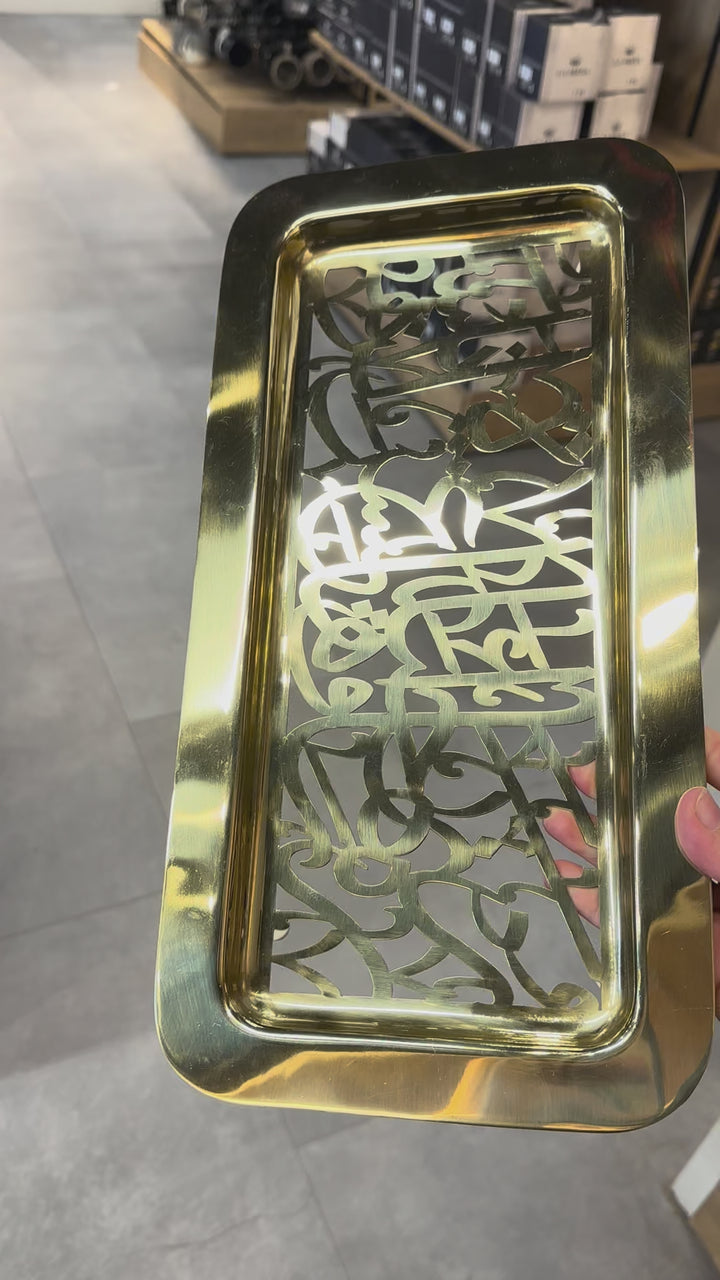 Add a touch of cultural elegance to your home with the Stainless Steel Serving Tray featuring Arabic letters. Expertly crafted from premium stainless steel, this tray combines modern shine with traditional Arabic artistry. Its rectangular shape and sleek design make it perfect for serving coffee, tea, sweets, or dates. A beautiful centerpiece for gatherings, it reflects both hospitality and heritage in every detail.